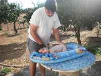 ico da aldeia, até que adormeceu e nem as colunas e amplificadores o acordaram. foi muito giro! Adorou mais uma vez tomar banhoca, no barco de borracha que improvisamos e serviu como piscina, ficava ao sol desde manha e à tardinha tomava a sua bela banhoca com a agua já quentinha!