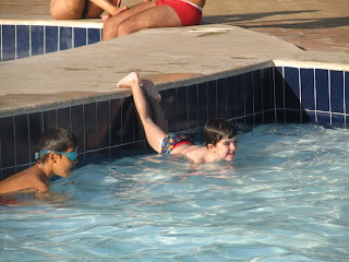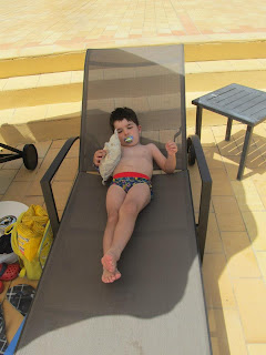 Passamos uns Dias em Évora em familia, e foi muito bom, o Rodrigo fartou-se de brincar dar mergulhos com os amigo sazonais. Ficou fã do Ricardo (criança que tb estava a passar ferias que o ensinou a dar mergulhos) .